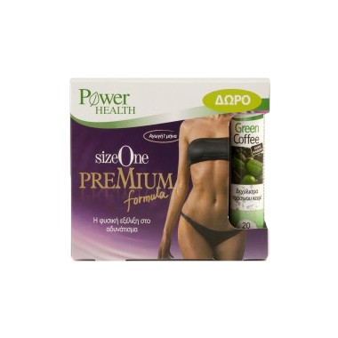 Συνδύασε την αγωγή Size One PREMIUM formula με ισορροπημένη διατροφή και σωματική δραστηριότητα και δες το σώμα σου να αλλάζει μέρα με τη μέρα. Περιέχει 60 κάψουλες του Size One Premium Formula και δώρο κανονικό προϊόν Green Coffee με 20 αναβράζοντα δισκία.